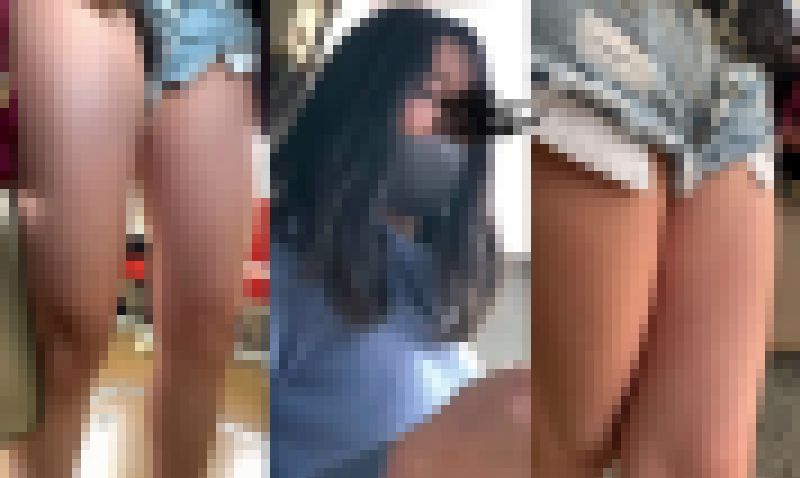 某鉄道構内で、エグすぎるハイレグショーパンを見せつける若ピチお姉さんを発見。