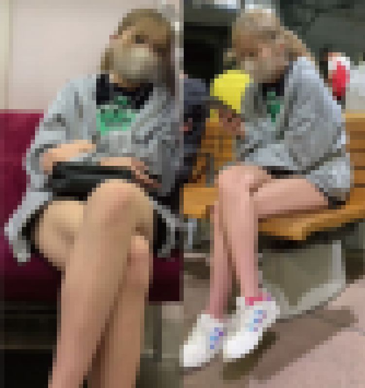 遠目に見てもわかる金髪と生脚に誘われ、さっそく撮影を試みていきます>v<初めはベンチで狙ったのですが、すぐに立ち上がられてしまい。。