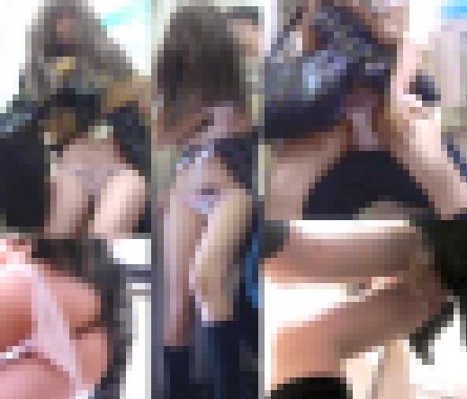 ここで大胆にも距離を詰めミニスカート内のぷり尻に食い込んだとても卑猥なパンチラを撮影。