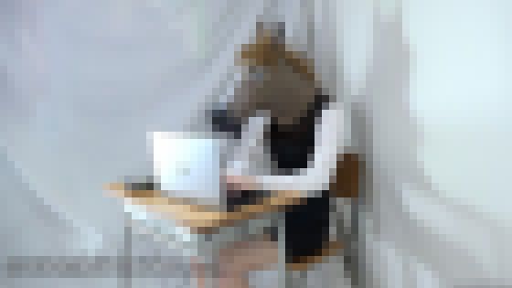 目隠しフェチ 馬の被り物をして接客するスーツのOLf762