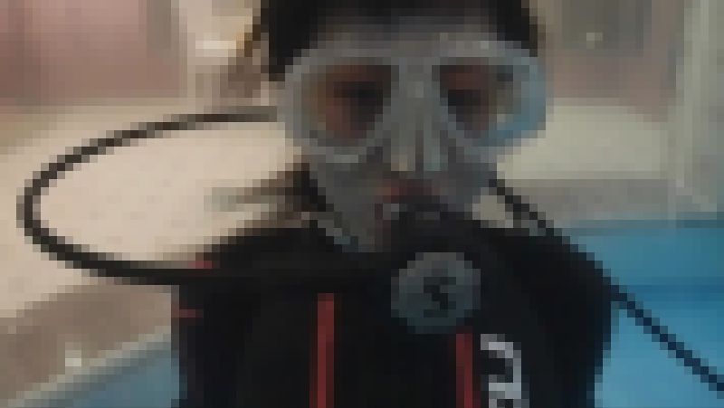 1回マスクの全没、脱着、クリア。を1回の水中動画、顔のアップメインほぼこのポーズのみ かなり暗め、音声は有りません
